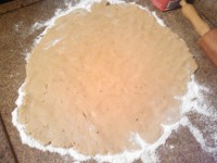 6 - Polvilhe ligeiramente uma superfície com farinha de trigo e abra a massa com um rolo até ficar com 5 mm de espessura
