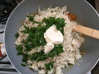 3 - Acrescente o requeijão e o cheiro verde. Misture bem.