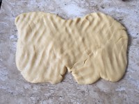 3 - Coloque a massa sobre uma superfície ligeiramente untada com óleo e sove bem (cuidado a massa vai estar quente então use as palmas da mão com cuidado para sovar).