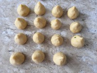 5 - Faça bolinhas com cada pedaço de massa. Reserve