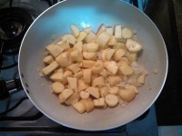 1 - Descascar as mandioquinhas e cortar em pedaços médios a pequenos