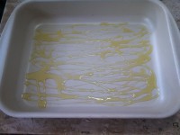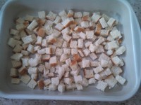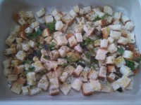 6 - Coloque um pouco de azeite por cima e musture levemente os cubinhos de pão