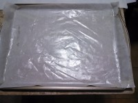 1 - Pré-aqueça o forno a 200 0C e forre uma forma com papel manteiga (eu passo um pouco de manteiga ou margarina pois a qualidade do papel manteiga anda meio duvidosa por aqui!)