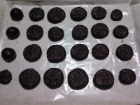 11 - Se desejar sirva como biscoitos ou coloque um pouco de ganache de chocolate sobre o fundo de um biscoito e cubra com outro biscoito***