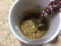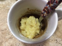 - 1/2 banana amassada (se quiser pode também usar 1 colher de sopa de maça ou pera cortada em pedaços pequenos)