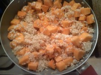 5 - Adicione oos cubos de abóbora e mexa bem